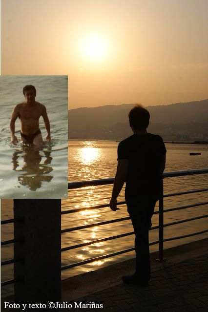 Paseo por la playa. El día se repliega sobre el horizonte en matices de sangre, sabiéndose morir sin que para él haya un mañana. La luz del faro de la isla cercana ha comenzado su ritmo de destellos anunciando la llegada irremediable de la oscuridad sobre las aguas de un mar que serena el ánimo, mientras mis pies descalzos pisan las arenas que aún guardan la humedad de sal con la que, hace apenas unos momentos, fueron bañadas por el último estertor de espuma marina,  antes de acabar de retirarse la marea para alcanzar la bajamar.  Aún no ha muerto del todo la luz del sol, cuando, al elevar mis ojos hacia el cielo percibo la silueta de la luna señoreando un azul que se va desvaneciendo mientras ella refulge misteriosa.     Junto a este mar nací en un tiempo lejano, cuando las dunas custodiaban la línea de playa y el río desembocaba casi virgen en la mar quebrando el arenal con su último fluir. Mar Ayer de juventud y sueños Hoy esp...